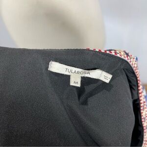 Tularosa Santa Fe fringe jacket. Color way: Diamondback. Open front. Jacquard fabric. Front patch pockets. Aztec pattern. Fringe hem. Blue and white. Lined. In excellent conditition. Size medium.