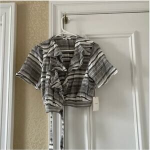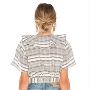 NWT. Sold at Revolve. Wrap-style with a ruffle detail. Striped fabric.