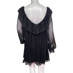 Tularosa Size Small Black Metallic Sheer Long Sleeve Ruffled Peasant Tunic Top