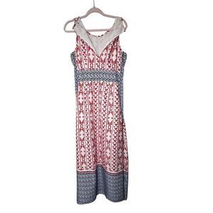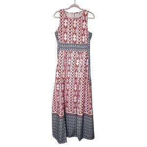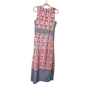 Tularosa Sleeveless Midi Dress Red White Blue Floral Geometric Boho Style Size M
