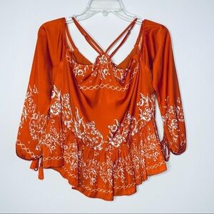 Tularosa Syrah Open Shoulder Boho Orange Blouse Size S