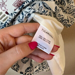 Pattern play defined. Tularosa's Taylor Dress takes a girlish off-the-shoulder-silhouette and peppers it with a whimsy print of petals and peacocks and crochet cut-out detail. Best with spring wedges, this dress can get edgy with a leather moto.