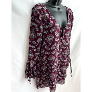 Tularosa Tunic Dress Top Eggplant Floral Bell Sleeve Ruffle Size S Romantic