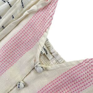 Self: 100% viscose.Trim & Lining: 100% cotton. Made in India. Hand wash cold. Fully lined. Shoulder tie straps with tassel accents. Button front closure. Smocked elastic back. Waist tie accent. Revolve Style No. TULA-WD490. Manufacturer Style No. TRD1058 S18.