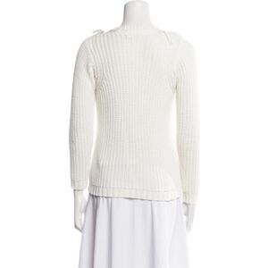 Tularosa White Fringe Knit Sweater XS – Long Sleeve Cotton Scoop Neck Pullover