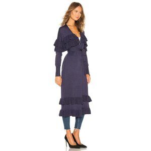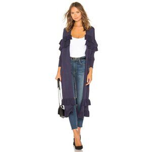 Tularosa Women Alexandria Ruffle Duster Cardigan Tie Waist Ribbed Trim Purple XS