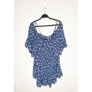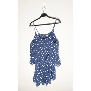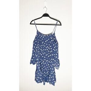 Tularosa Women's Hattie Dress Cold Shoulder Tier Ruffled Mini Blue White Ink Dot