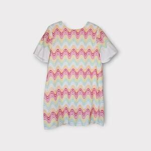 Tularosa Womens Lexi Shift Dress Pastel Rainbow Wave Print M Sorbet Colorful