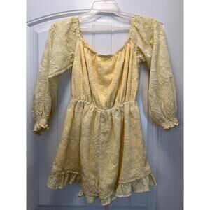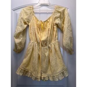 Tularosa Women’s Off The Shoulder Ida Ruffle Hem Floral Romper Size S Yellow