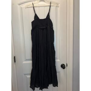 Tularosa Women’s V Neck Cotton Sleeveless Tiered Ruffle Summer Dress Sz M Black
