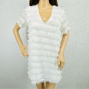 Tularosa Women’s size XS Lambros White Eyelash Fringe Mini Dress in good preowned condition.