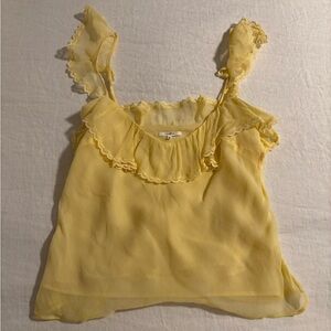 Charming yellow blouse with ruffle details. Sleeveless design. Perfect for a sunny day.