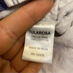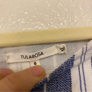 Tularose Revolve blue stripe frayed shirt blouse short sleeve crop coastal top S