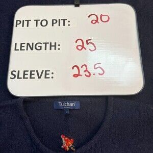 Tulchan 100% Lambswool Navy Embroidered Fall Cardigan Sweater Women's Size Medium