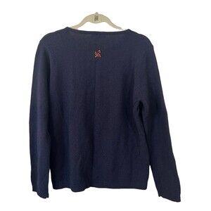 Tulchan 100% Lambswool Navy Embroidered Fall Cardigan Sweater Women's Medium