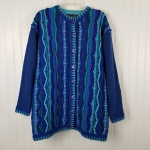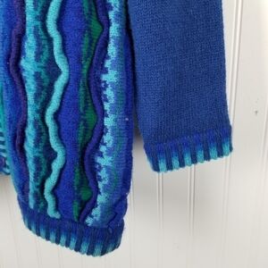 Tulchan Men's Coogi Style Vintage Wool Cardigan Sweater 3D Blue Green Size S/M