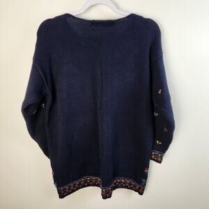 Tulchan Navy Blue Oversized Knit Colorful Sweater Size Medium Cottage Fall Cozy