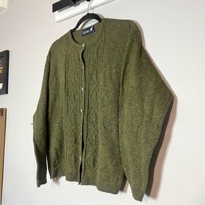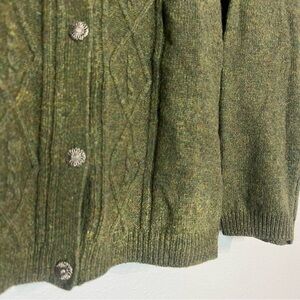 Tulchan Olive Green Wool Cardigan Sweater Size Large Flaw Silver Buttons