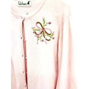 Tulchan Pink Embroide Wool Angora Blend Cardigan Sweater M - L