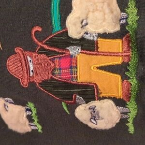 Tulchan Vintage Pullover Collar Sweatshirt Green Embroidered Shephard Sheep y2k