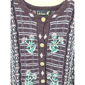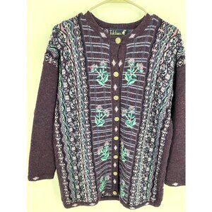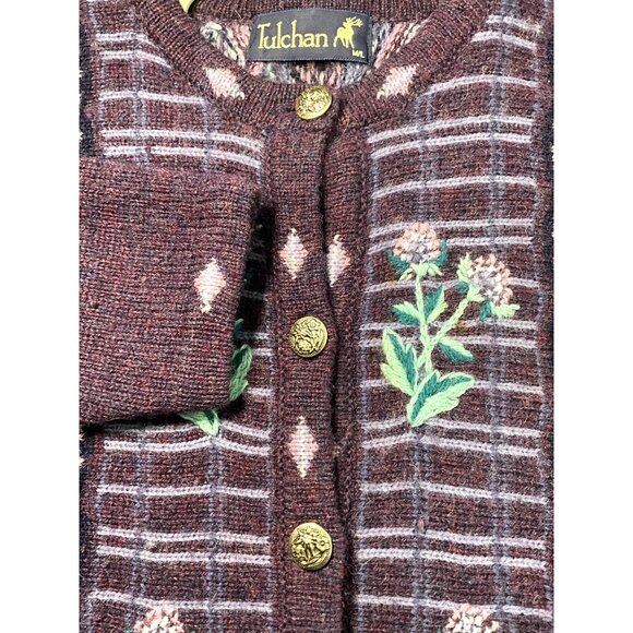 Tulchan Womens Wool Cardigan With Floral Embroidery & Gold Buttons Size M/L Mulb