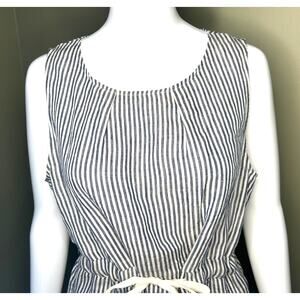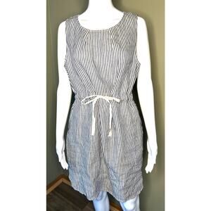 Tulip B Sleeveless 100% Linen Tank Dress Nautical Stripes Cream Black Sz Medium