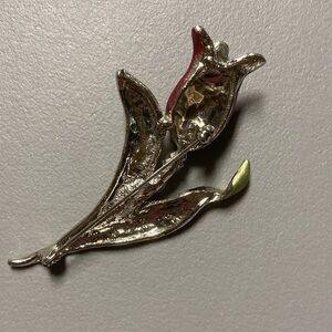 Pink tulip brooch/pin with leaves. Back is silvertone.
