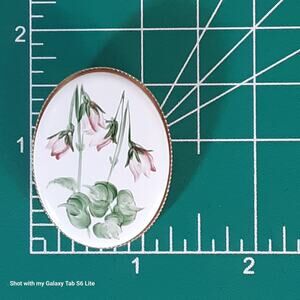 Tulip Cameo Brooch Gold Tone Framed White Enamel