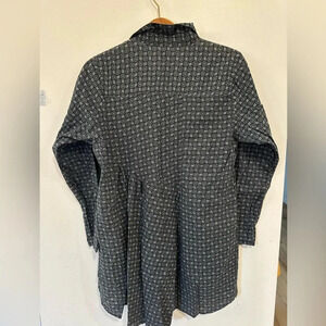 Tulip Clothing Tunic Button Down Small Blue Geometric Lagenlook Cotton Shirt