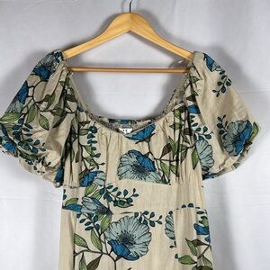 Tulip Creations Cream Floral Print Puff Sleeve Scoop Neck A-Line Midi Dress Lg