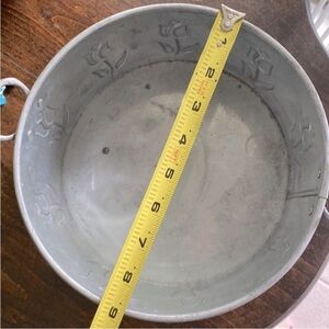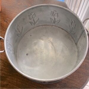 Spring is calling. Classic blue metal tub with elegant floral cutouts. Perfect for decor storage or garden succulents and tulip garden.