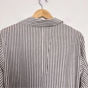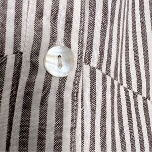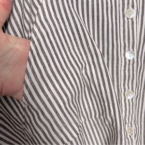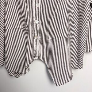 Tulip Lagenlook Shirt Brownish Gray Stripe Loose Asymmetrical Hem Button Down