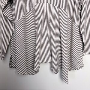 Tulip Lagenlook Shirt Brownish Gray Stripe Loose Asymmetrical Hem Button Down