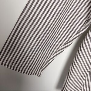 Elevate your wardrobe with this stylish cotton striped lagenlook style shirt. Featuring a classic brownish gray and white design, it's perfect.