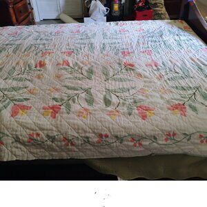 Tulip Motif Vintage Full Size Spread / Cutter Material / Lovely vintage spread that has lost edge application. Suitable for crafts