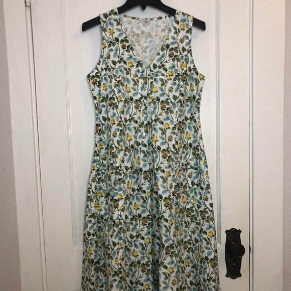 Tulip Poppie Floral Cotton Dress XS Sleeveless V-Neck Pocket Midi