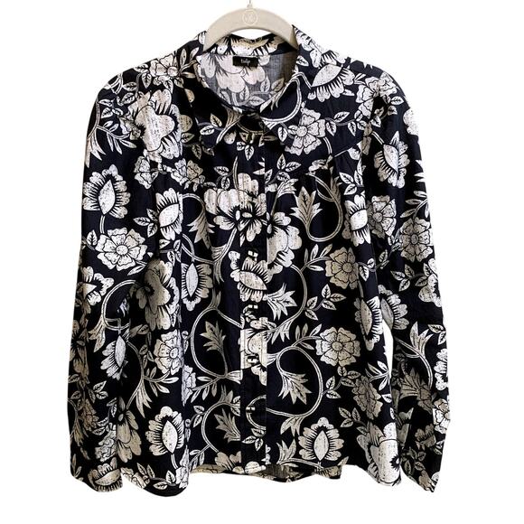 Tulip Sadie Blouse Shirt Women Size Small Black White Floral Cotton Relaxed Fit
