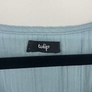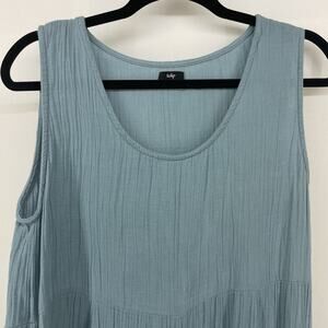 Tulip Size S Gauze Midi Dress Sleeveless Pockets Blue Scoop Neck Solid Cotton