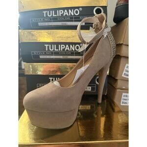 Tulipano Brand beige faux suede cut out platform ankle strap heel size 4
