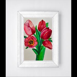 An original, vibrant watercolor painting depicting colorful tulips. A wonderful and unique gift idea or home decor.