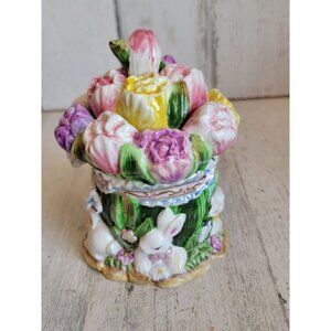 Tulips bunny vintage floral sugar container tea accessory rabbit spring