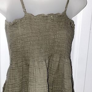 Tulle 100% cotton Dress Top Blouse Military Green Strap Boho Hippie Medium M