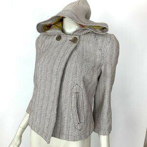 Tulle 3/4 Sleeve Crop Jacket Hood Lined Cotton Pockets Women XS Girl Junior NWT