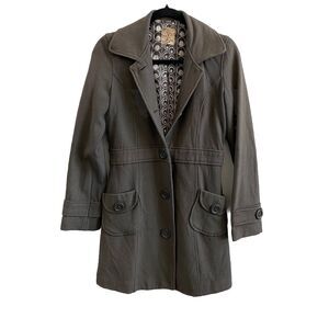 Tulle Anthropologie Coat Womens Small Brown Gray color 60% Wool 5 Button Jacket Trench Peacoat