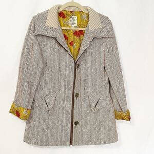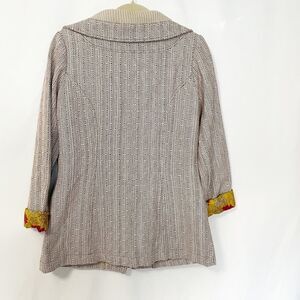 Tulle Anthropologie Fitted Peacoat. Beautifully coat with lots geometric of details. Triange flap button pockets. Knitted collar. Thick patterned fabric with satin like floral lining.
