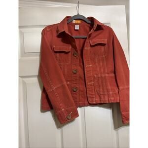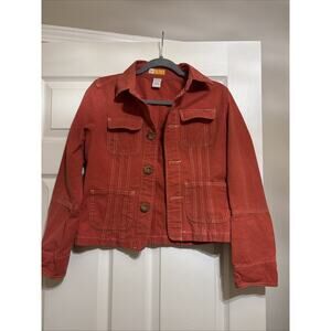 Tulle Anthropologie Women's L Cotton Button-up Short Jacket Melon Pink/Red 153H