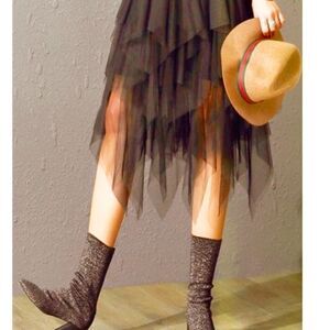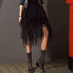 Hellloooo GORGEOUS!!! Layered Asymmetrical Hem Tulle / Mesh “Time to Party” Tiered Black Skirt!!!!