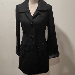 Tulle Black Walker Coat, Size Small, 60% Wool, 40% Viscose Dry Clean