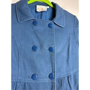 Tulle Corduroy Pea Coat Blue Size M 2 Pockets Cotton