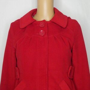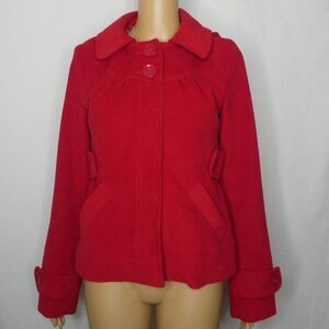 Tulle Crop Cropped Pea Coat Jacket Hooded Red Sm